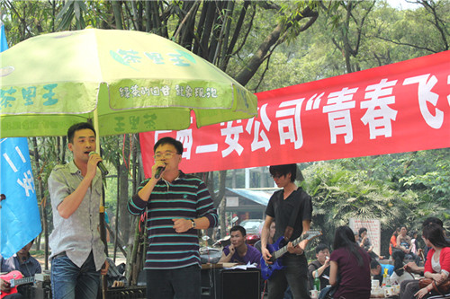 2011年4月23日,集團二安公司團委組織全公司各基層團支部在柳州市雀山公園舉行了主題為“青春飛揚” 露天音樂會團日活動,迎接第92個“五四青年節(jié)”的到來。公司董事長、總經(jīng)理、黨委副書記黃鼎龍;公司黨委書記、紀委書記、工會主席藍錦??;公司副總經(jīng)理覃幼轍;公司副總經(jīng)理、第三分公司經(jīng)理莫雄清參加了此次活動。并為榮獲集團公司一屆二次職代會文藝晚會一等獎的演員及榮獲公司2010年度“十佳青年崗位能手”頒發(fā)榮譽證書及獎金。活動集表彰、素質(zhì)拓展訓練、氣排球比賽,文藝表演等于一體,形式新穎,精彩紛呈。團員青年們積極參與,各自表演自己的特長,唱歌、跳舞等節(jié)目層出不窮,活動現(xiàn)場氣氛熱烈,高潮迭起,展現(xiàn)出了二安青年員工朝氣蓬勃、積極向上的精神面貌,吸引了不少圍觀者的眼球。此次活動的開展,增進了團員青年們的溝通交流,企業(yè)凝聚力進一步增強,更好地促進廣大團員青年員工立足崗位,扎實工作,不斷創(chuàng)新,充分發(fā)揮團員青年生力軍作用,在公司建功立業(yè)過程中體現(xiàn)青年人的人生價值,為公司健康快速發(fā)展奉獻青春力量!